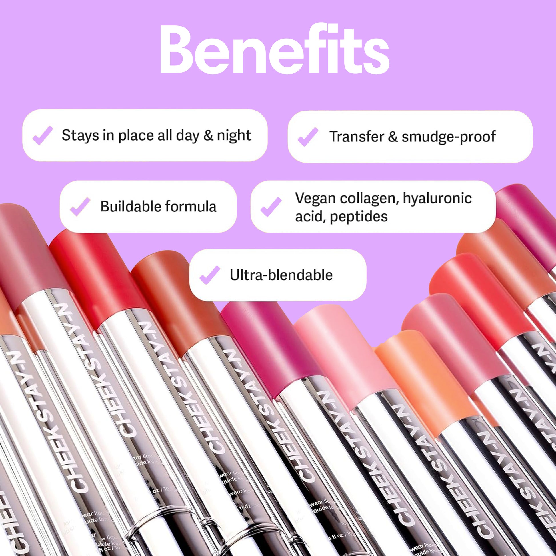 You can expect the cheek stain blush to last from morning to night, give or take about 8-12 hours.